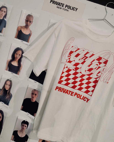 An unusually balanced capsule collection, with heritage brand Coca-Cola®, was reworked through PRIVATE POLICY’s unique lens. Two juxtapositions bound by shared values, the sporty mini collection is a nod to equality and community.