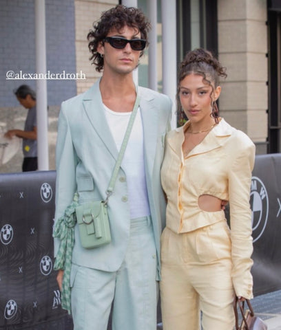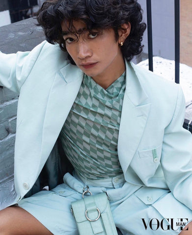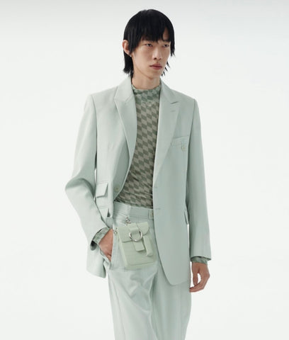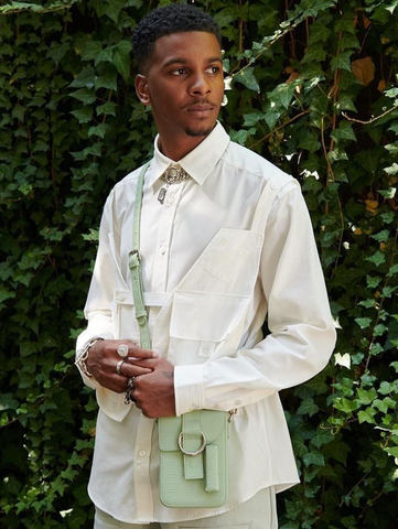 Bretman Rock wearing the Reporter Box Bag in color Sage
