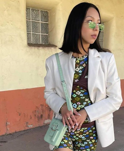 @lumia.nocito wearing the Reporter Box Bag in color Sage